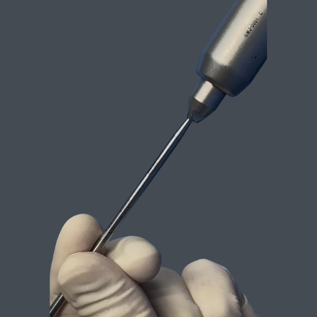 During TPLO procedures, precise rotation of the proximal tibial segment is essential for proper osteotomy alignment. Surgeons often rely on a strategically placed K-wire or Steinman pin to provide leverage, but many pin drivers are incapable of holding wires much larger than 0.062β. This forces the use of bulky Jacobs chucks, slowing workflow and compromising ergonomics.